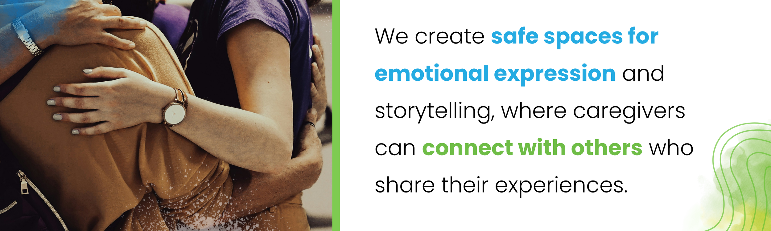 Support from a community can help reduce feelings of loneliness and caregiver burnout. Sharing experiences with others creates space to process emotions and acknowledge complex feelings (such as grief, guilt, frustration, and hope) without needing to filter or explain them.