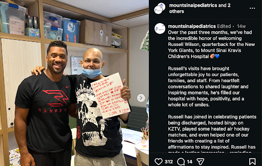 NFL quarterback Russell Wilson uses his platform to support pediatric health initiatives and children’s hospitals, including through the Why Not You Foundation. His work helps expand access to resources and care for children facing serious medical conditions.