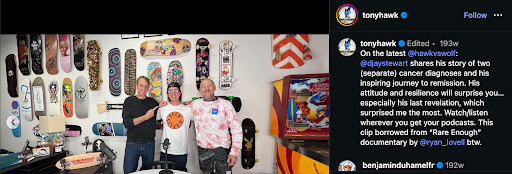 Legendary skateboarder Tony Hawk has used his platform to support adaptive athletics and inclusive access to sport. His work broadens participation for individuals often excluded from traditional athletic spaces, reinforcing that movement, identity and community remain meaningful across a wide range of physical abilities.