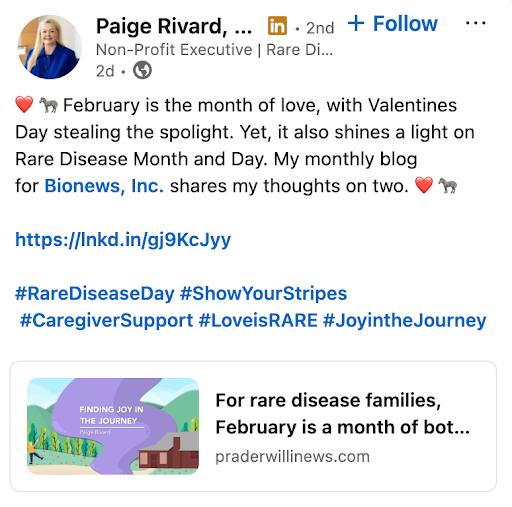 Paige Rivard is a rare disease advocate and caregiver whose child lives with both Prader–Willi syndrome and neurofibromatosis type 1.